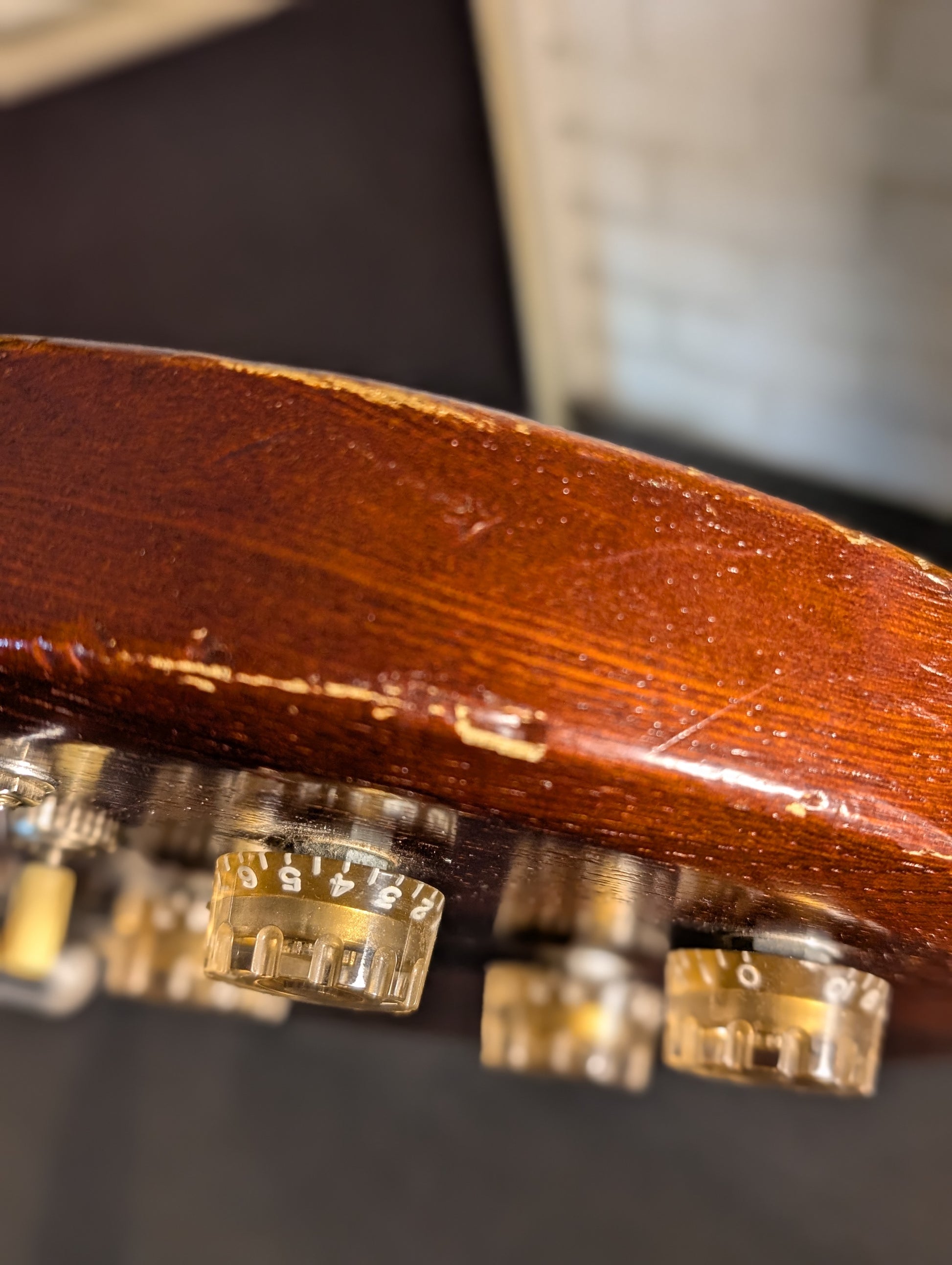 - Hardware: Original Bridge Tailpiece, Chrome Plated. Individual Covered Machine Heads