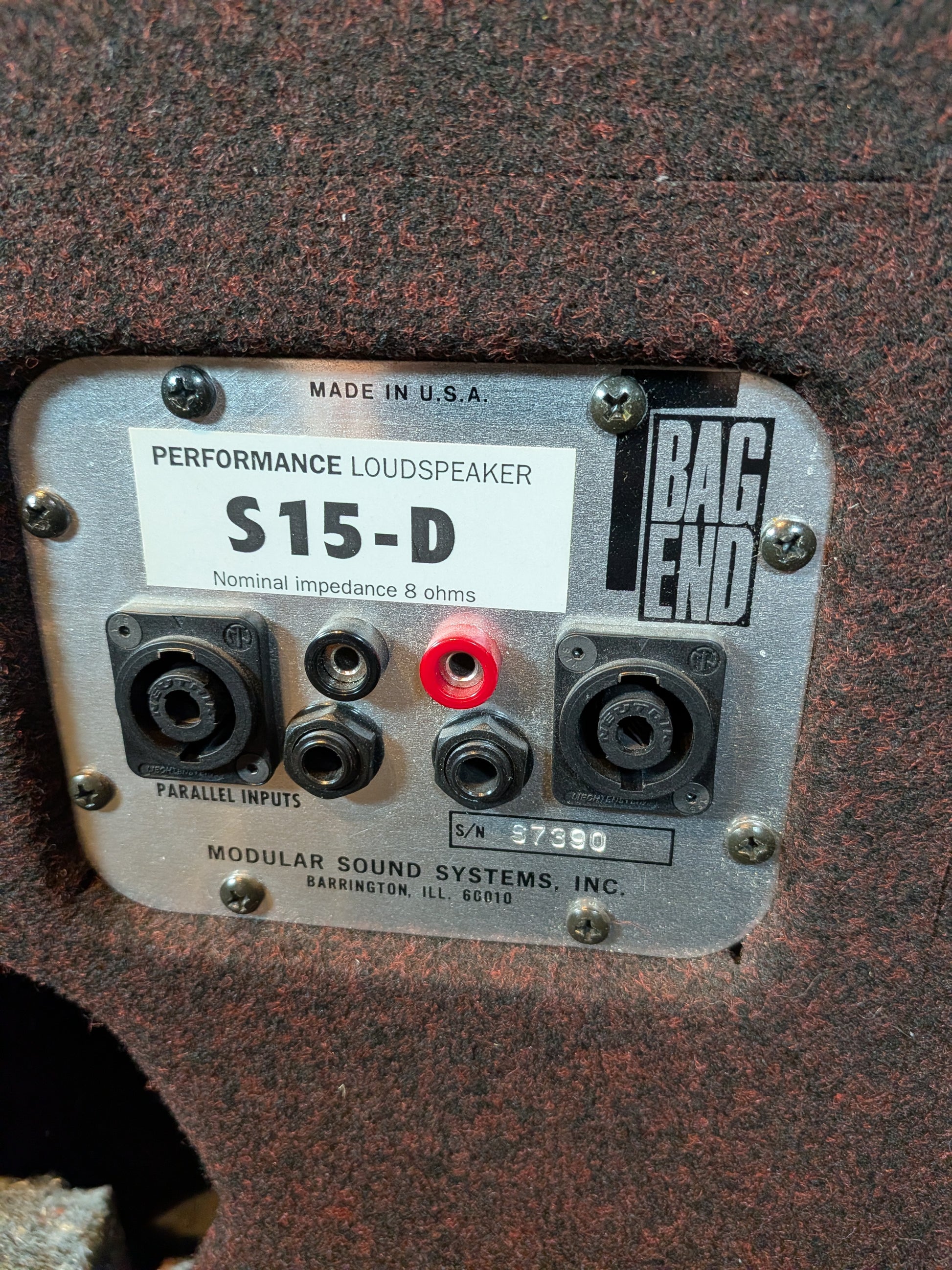 The Bag End® S15-D is a super compact single 15” musical instrument speaker well matched to the electric guitar, electric bass, or acoustic bass. It has damped spring loaded handles, shock absorbing corners, and a 3/4” thick plywood cabinet covered in our Deep Red carpet making it a very portable, and durable speaker enclosure. It is rear vented, with 2 parallel Neutrik® combo 1/4” + SpeakON jacks for high current connections. Its excellent sound and modest size make it a great choice for a stand alone system for most gigs or as part of a larger multi way modular system. The S15-D includes the same quality and workmanship that has made Bag End® Deep Red legendary among the best musicians throughout the world.