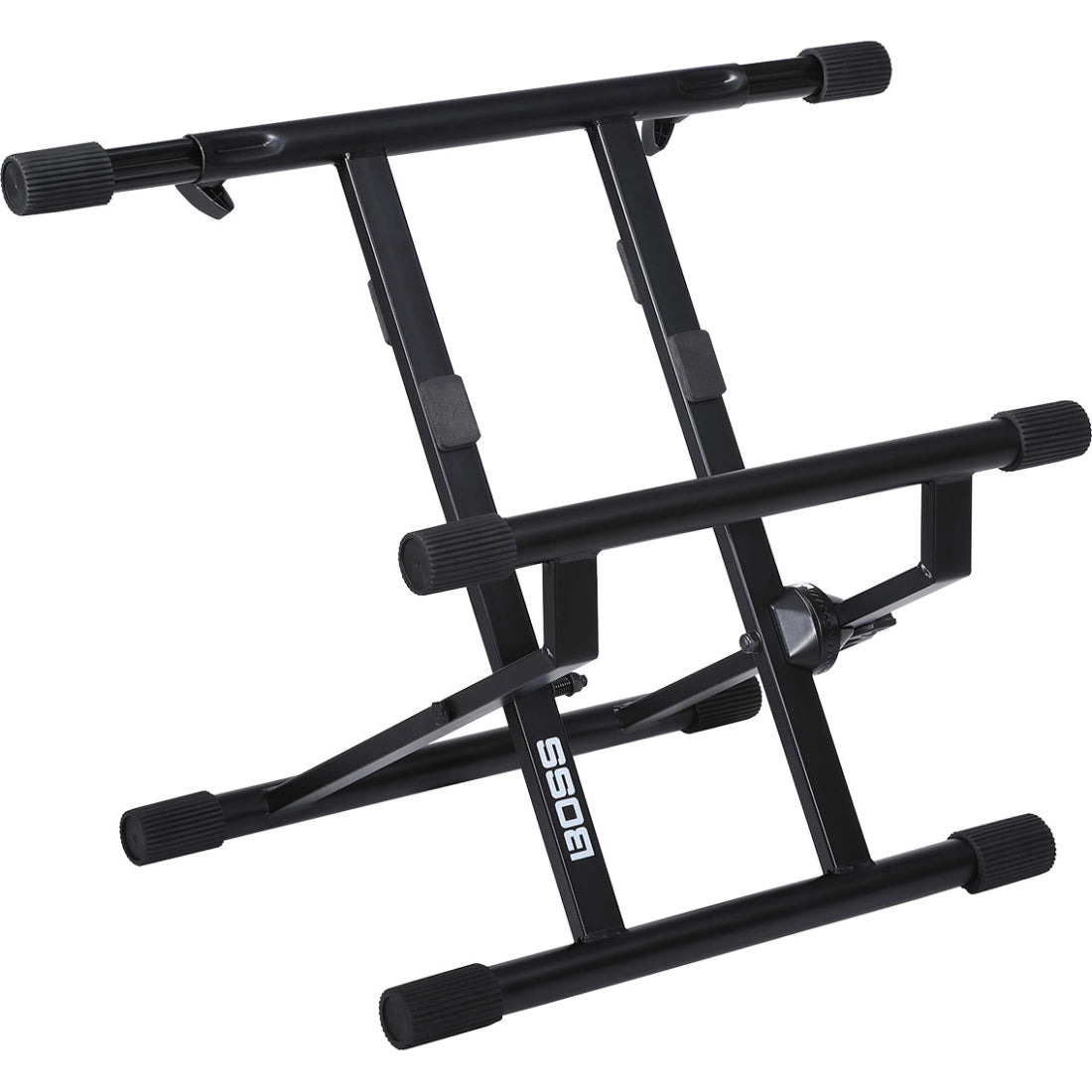 The BOSS BAS-1 Amplifier Stand cradles your favourite combo guitar amp at the perfect angle for monitoring and sound projection, whether at home, on stage, or in the studio. Constructed with heavy-duty steel for long-lasting durability, the BAS-1 features an adjustable tilt-back design and a telescoping support arm that accommodates a variety of cabinet widths. The stand collapses for easy travel, with a locking cam and quick-release lever for fast set up and tear down. And with adjustable feet, you can achieve wobble-free stability when using the BAS-1 on slightly uneven surfaces.