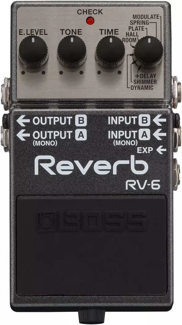 Combining high-end sound and wide-ranging versatility, the RV-6 takes pedal-based reverb to the next level. Reaching beyond the capabilities of previous generations, this powerful stomp employs the latest tech and legendary BOSS know-how to make it easy to get amazing reverb tones instantly. From subtle rooms to modern shimmer effects to long, evocative reverbs, the RV-6 envelops your tone in lush ambient spaces that endlessly inspire.