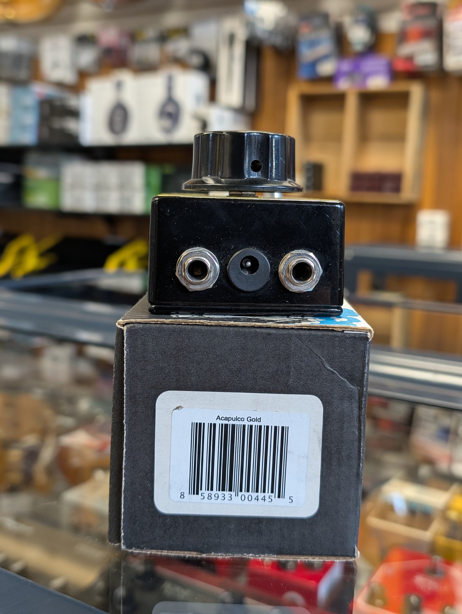 With your guitar's volume all the way up, the Acapulco Gold roars like a wide-open Model T on the verge of explosion. At just-barely-backed-off, the Gold becomes a raunchy overdrive. At minimum guitar volume settings, the Acapulco Gold delivers a hazy, Nashville-sounding spank to your tone.