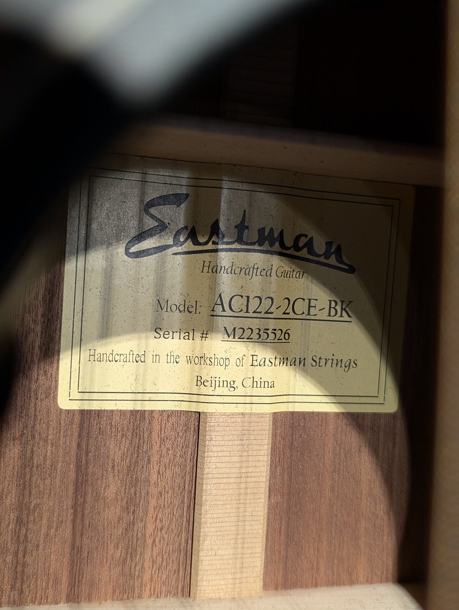 Eastman AC122-2CE Grand Auditorium Acoustic/Electrc Guitar w/Gig Bag - Black (Serial #M2235526)