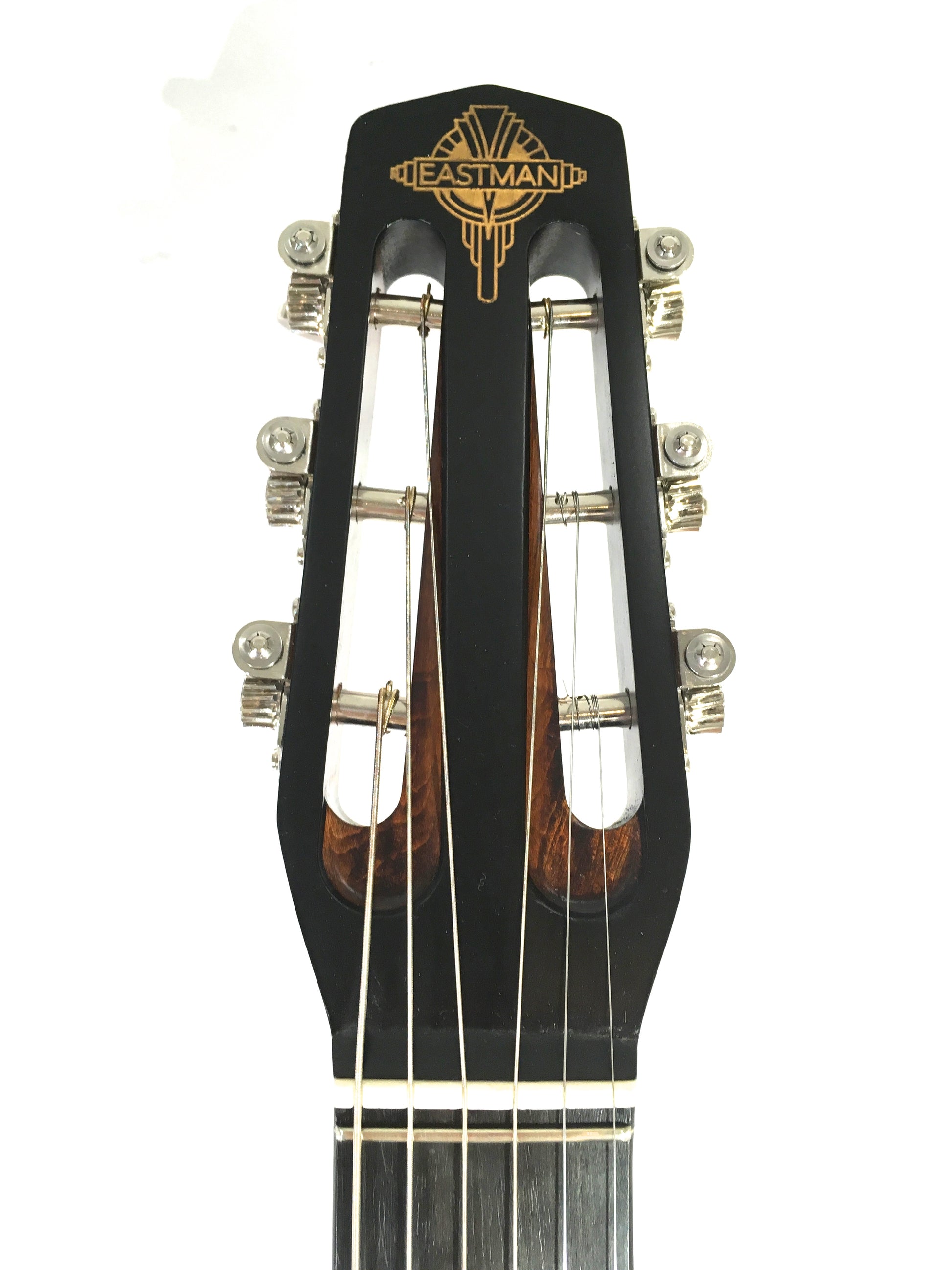 The DM1 Gypsy Jazz guitar features an ebony board, Gotoh tuners, solid sitka spruce top, laminate rosewood sides and back. Sold with a padded Eastman gig bag.