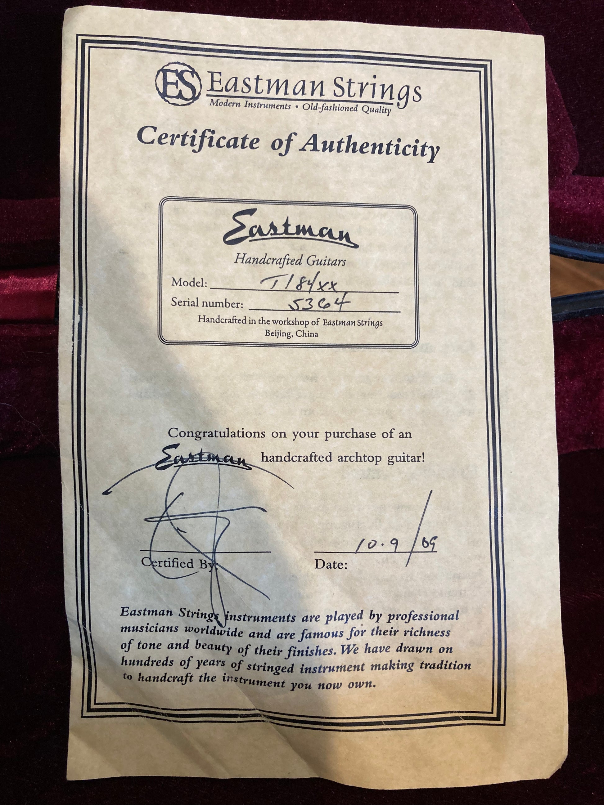 Eastman T184MX Thinline Semi-Hollow Body Left Handed Electric Guitar w/Case - Classic Finish (2009)