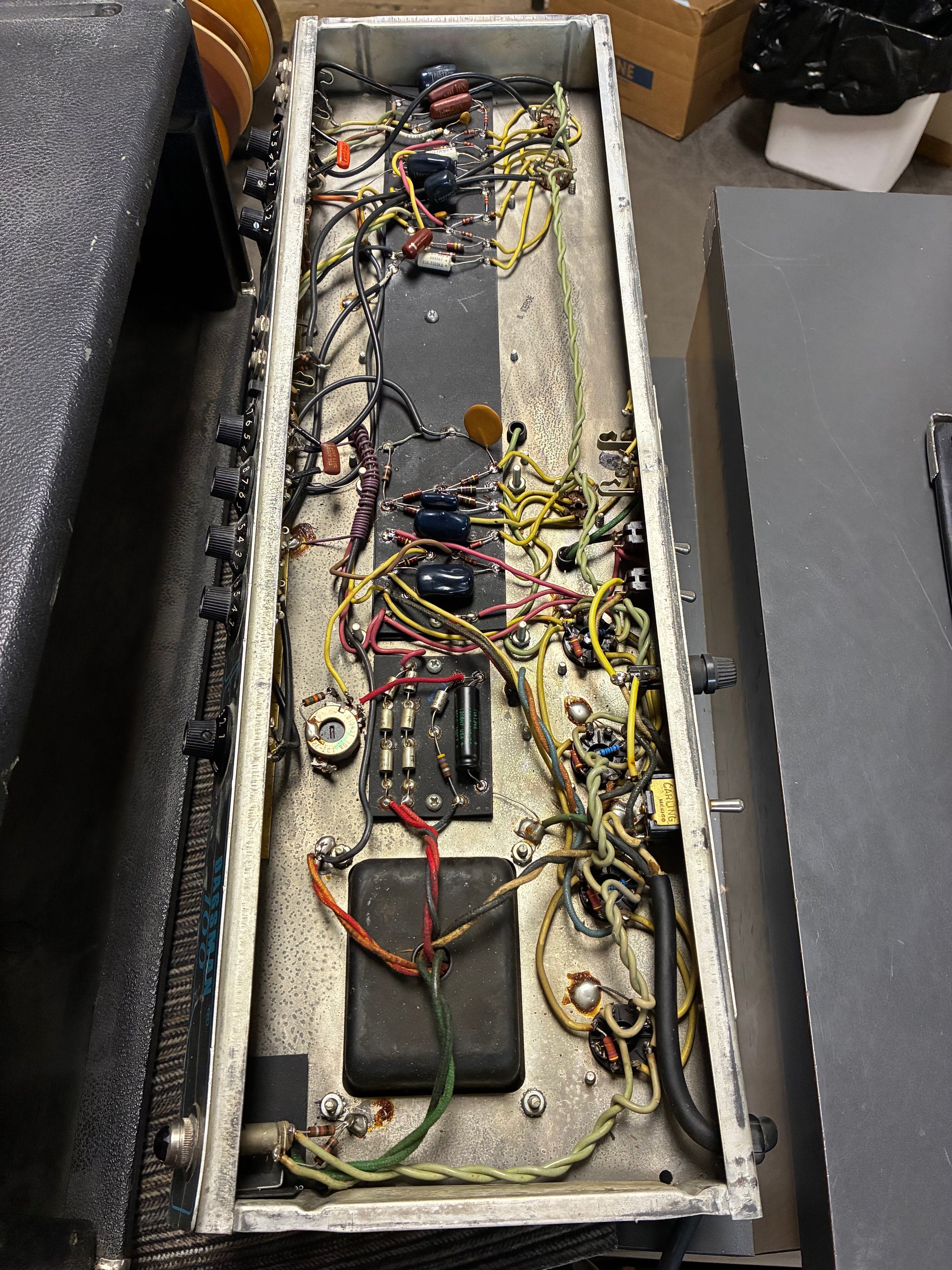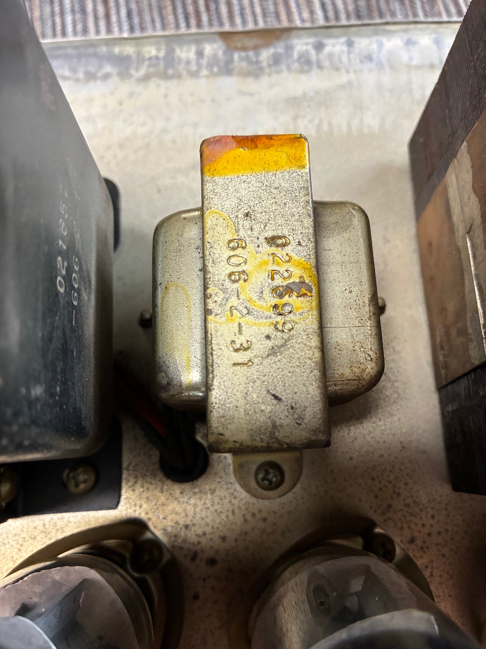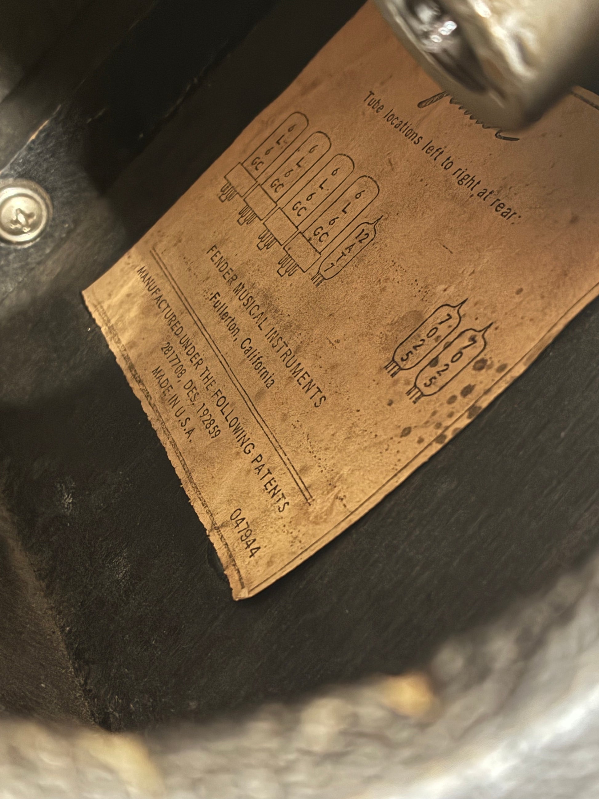 This amplifier is in good condition for its age and is working well with no issues. All the tubes were changed a few years back by a tech as well as some new pots on certain controls and a 3 prong power cable. The chassis and tube chart numbers don't say much regarding the dating on this amp however the transformer, which is original, has a code that dates it to 1972.