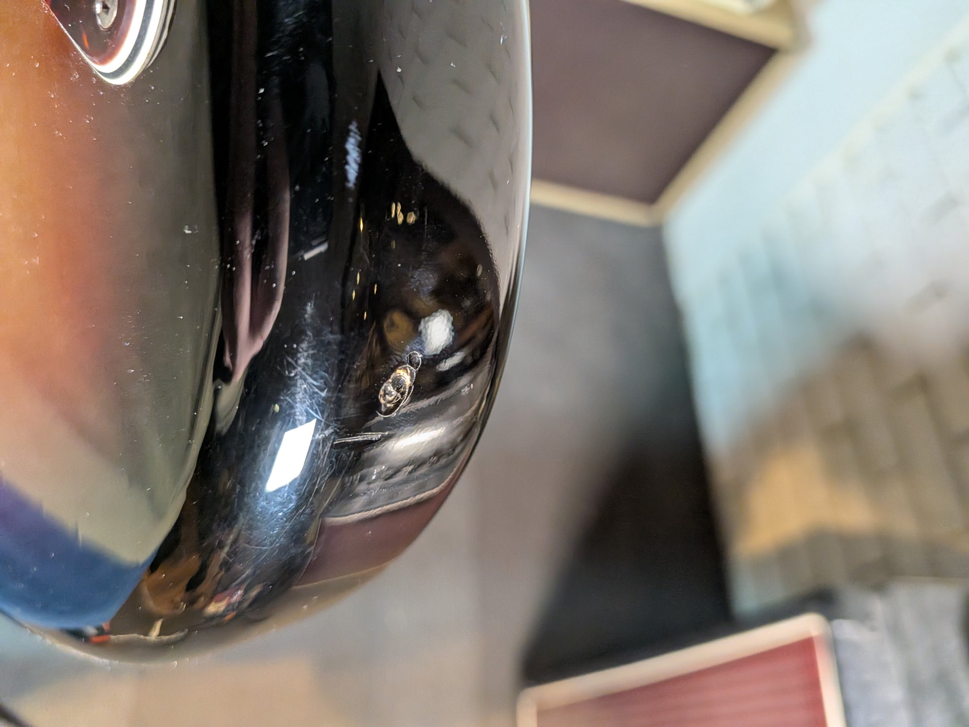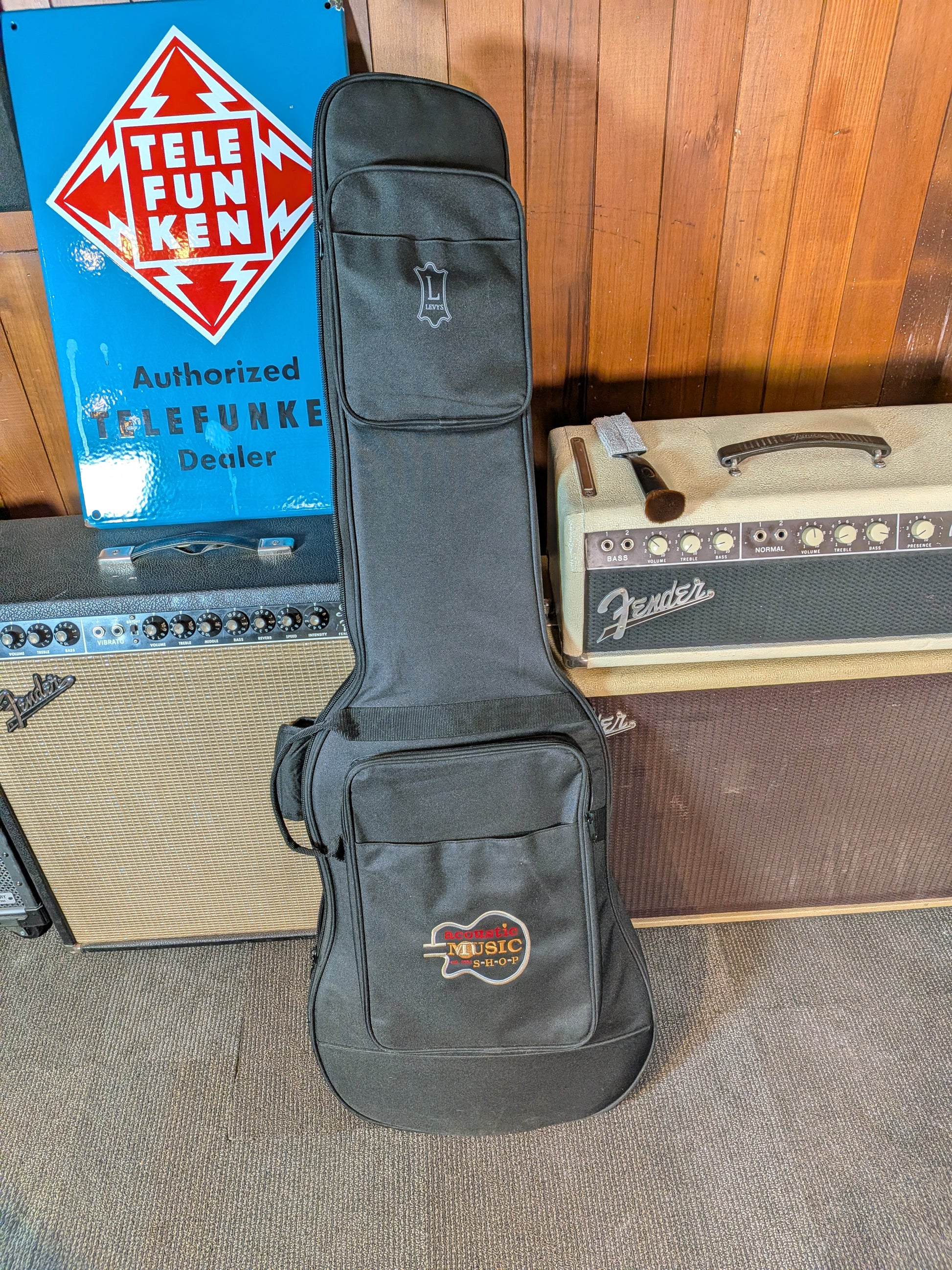 This guitar is in very good condition with minor cometic wear. All parts, electronics and frets are in very good condition as well with no issues. There is a small ding on the bottom side of the instrument that is very minor. A padded gig bag is included, the trem is not included with the instrument.