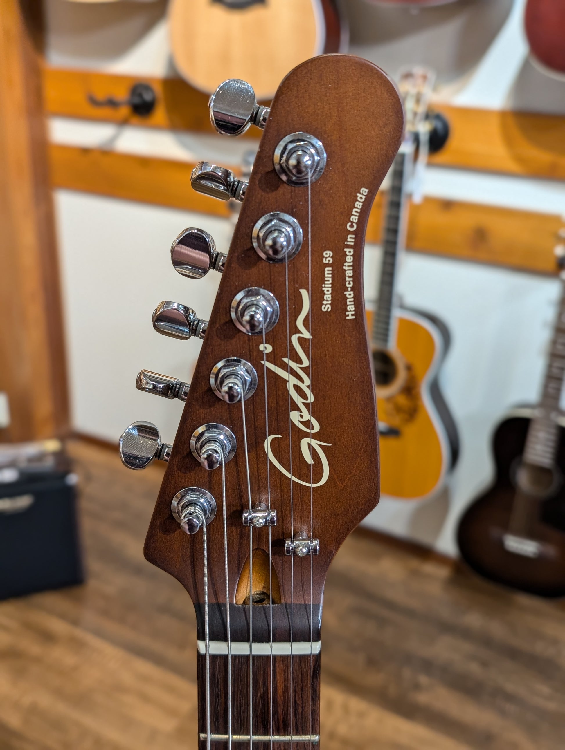 The Stadium ‘59 embodies the latest evolution of modern playability and style, while providing tonal versatility through the combination of its Seymour Duncan ‘59 humbucker and Godin custom Cajun single-coil pickup. This standout electric showcases a unique and eye-catching Desert Green finish and a vintage ashtray bridge.