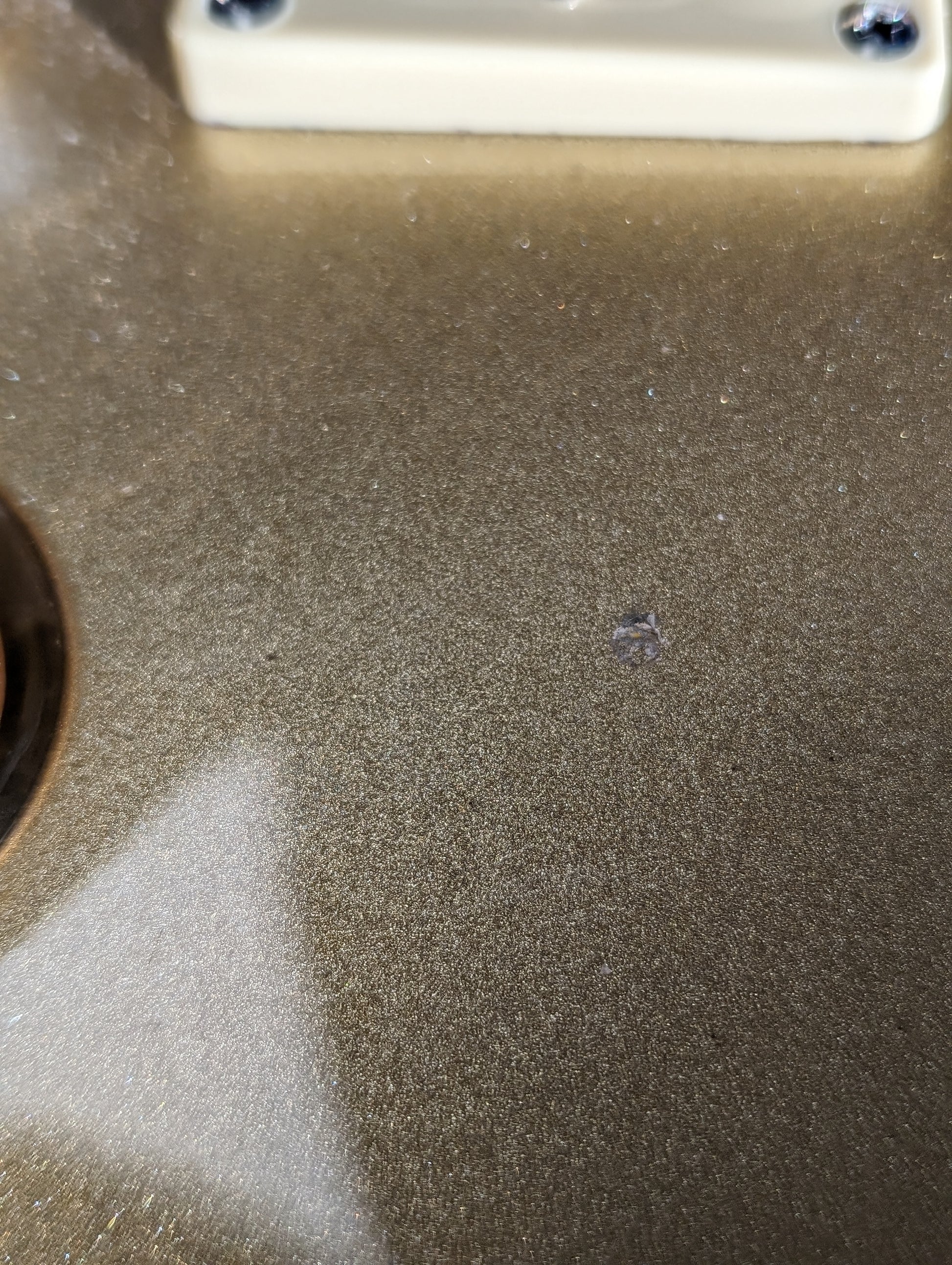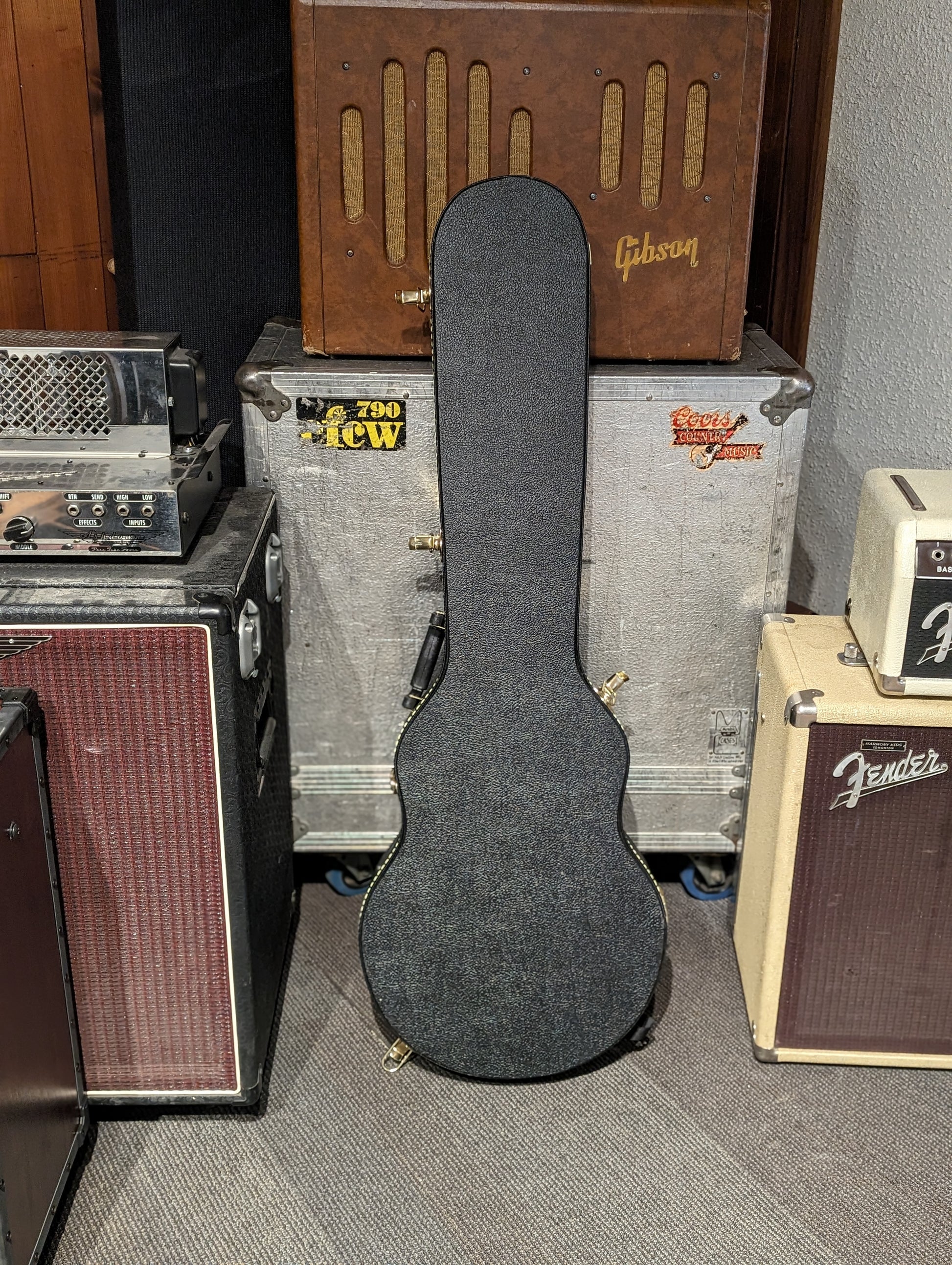 This guitar is in very good condition, with only some minor play wear. A custom pickguard was fabricated and installed by one of our techs at the request of the original owner. The only spot of visible damage is under the pickguard where the bracket mounts, there is a small ding but it isn't visible unless the pickguard is off. An aftermarket fitted hard shell case is included.