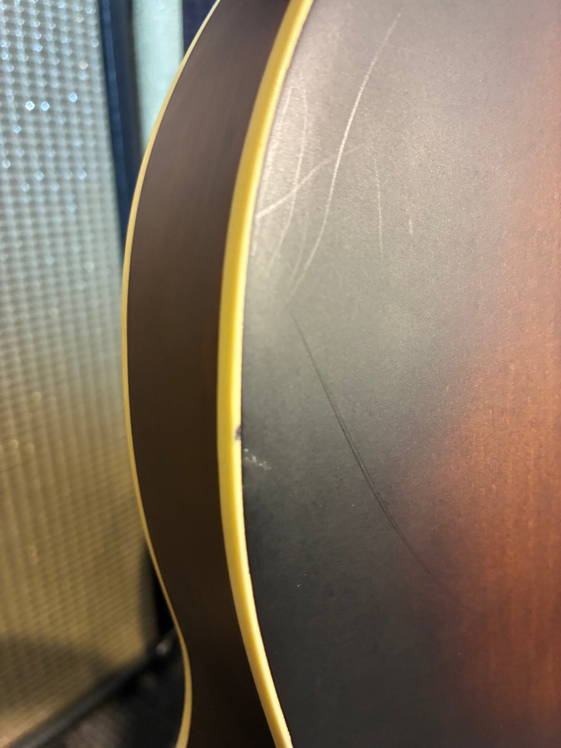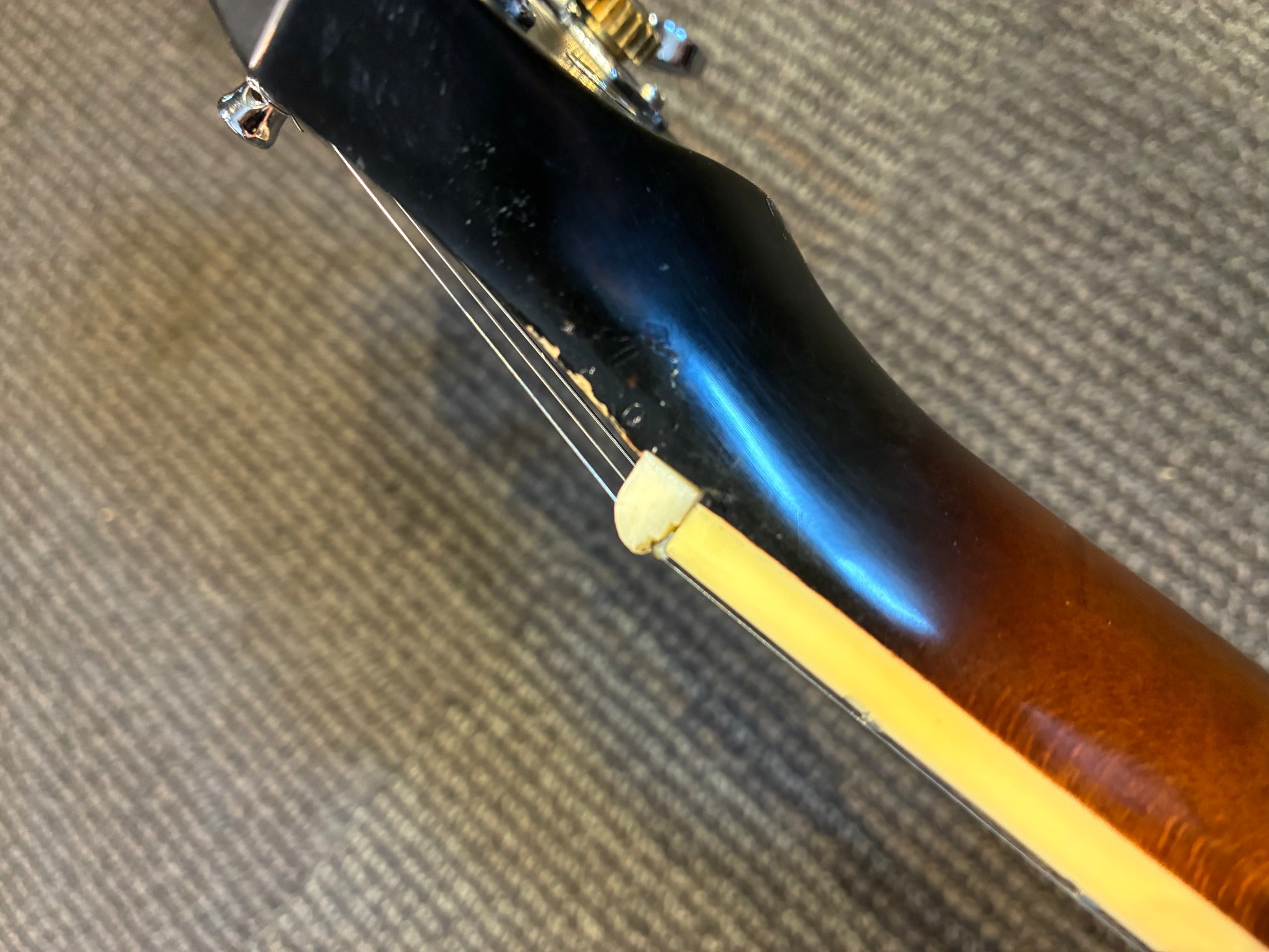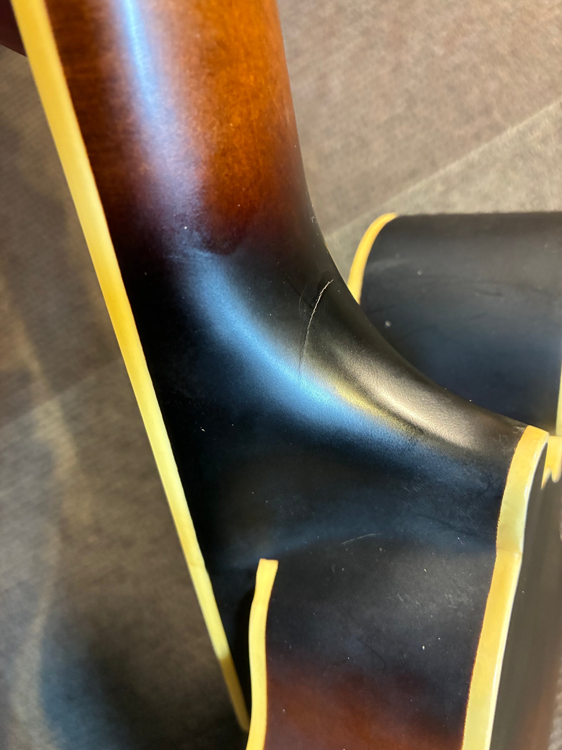 Cosmetically it is in very good condition with standard playing wear. It appears someone tried to touch up a few minor dings with some aftermarket finish. There is also a small finish crack on the heel of the neck but not into the wood.