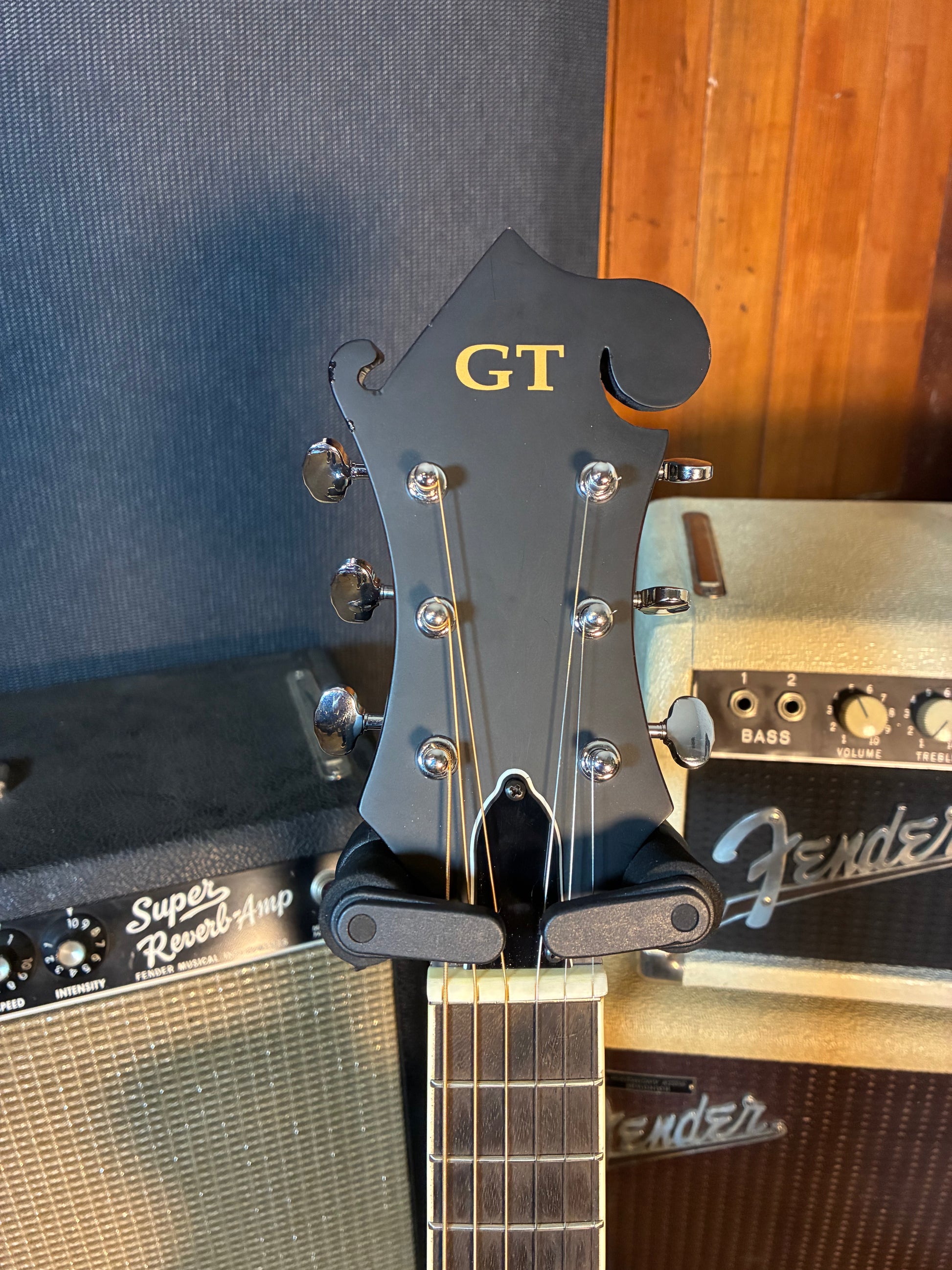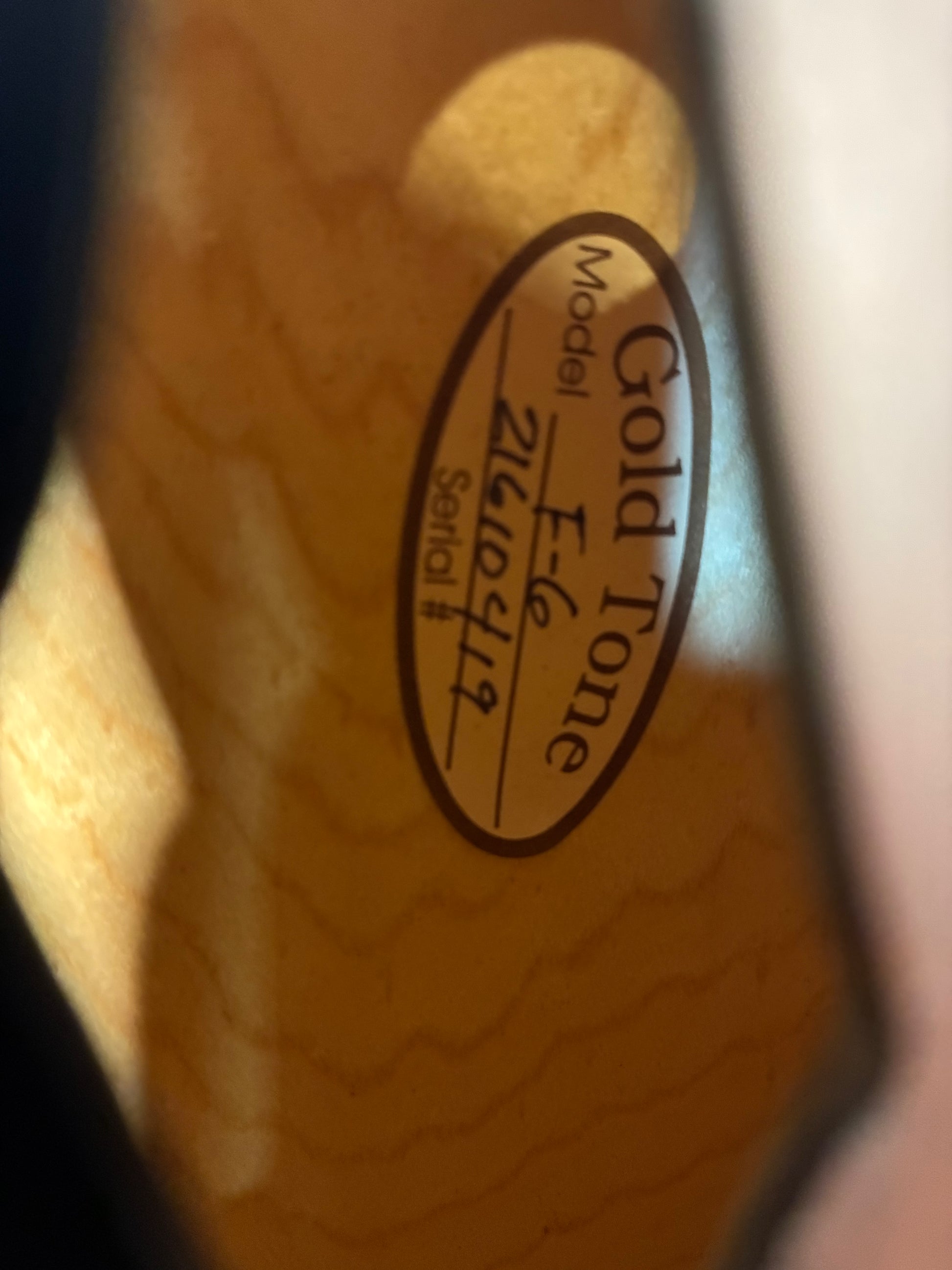 The F-6 by Gold Tone is a small 15" scale guitar with a F-style Mandola type body and tuned to standard E, A, D, G, B, E tuning.
