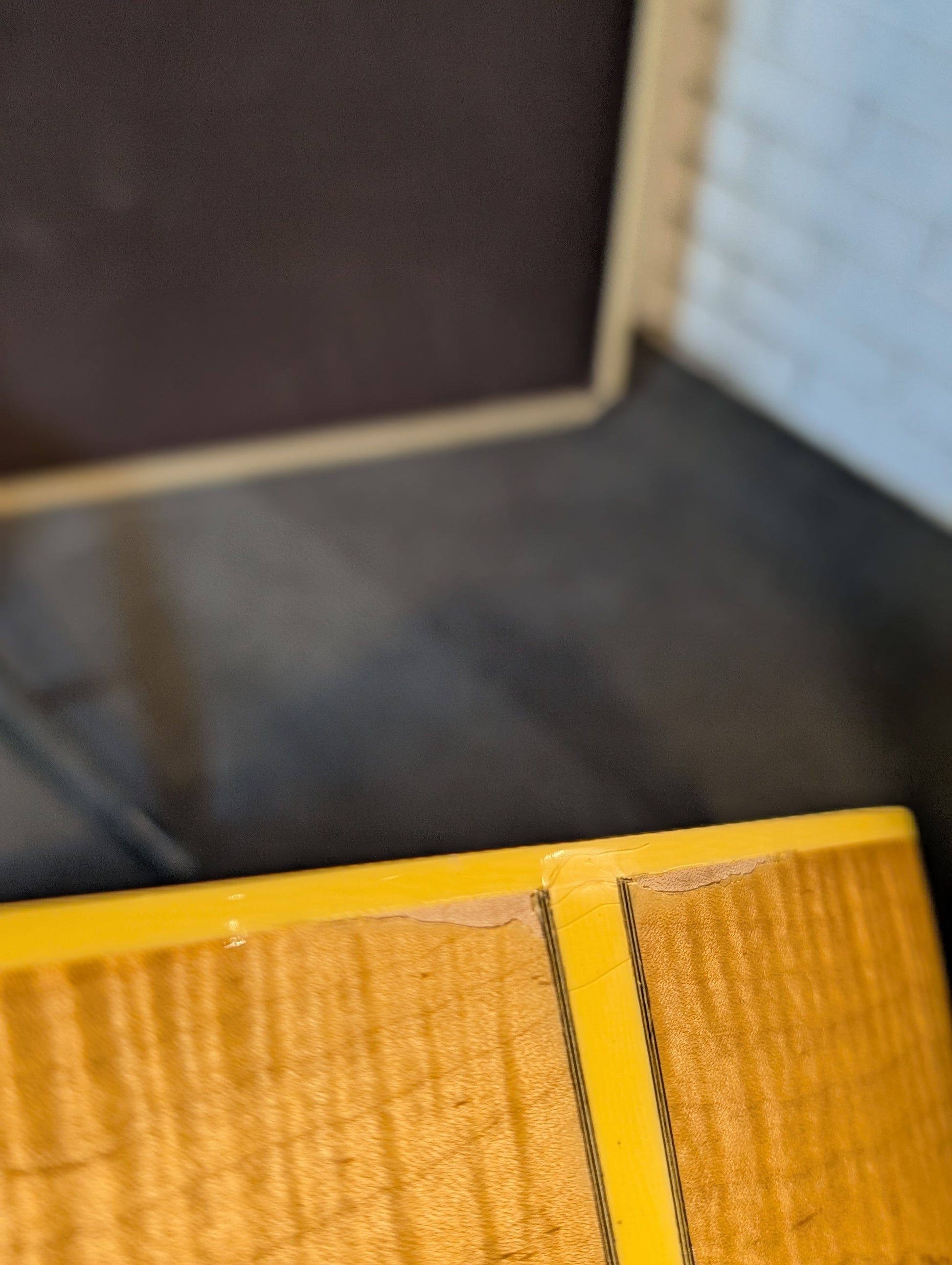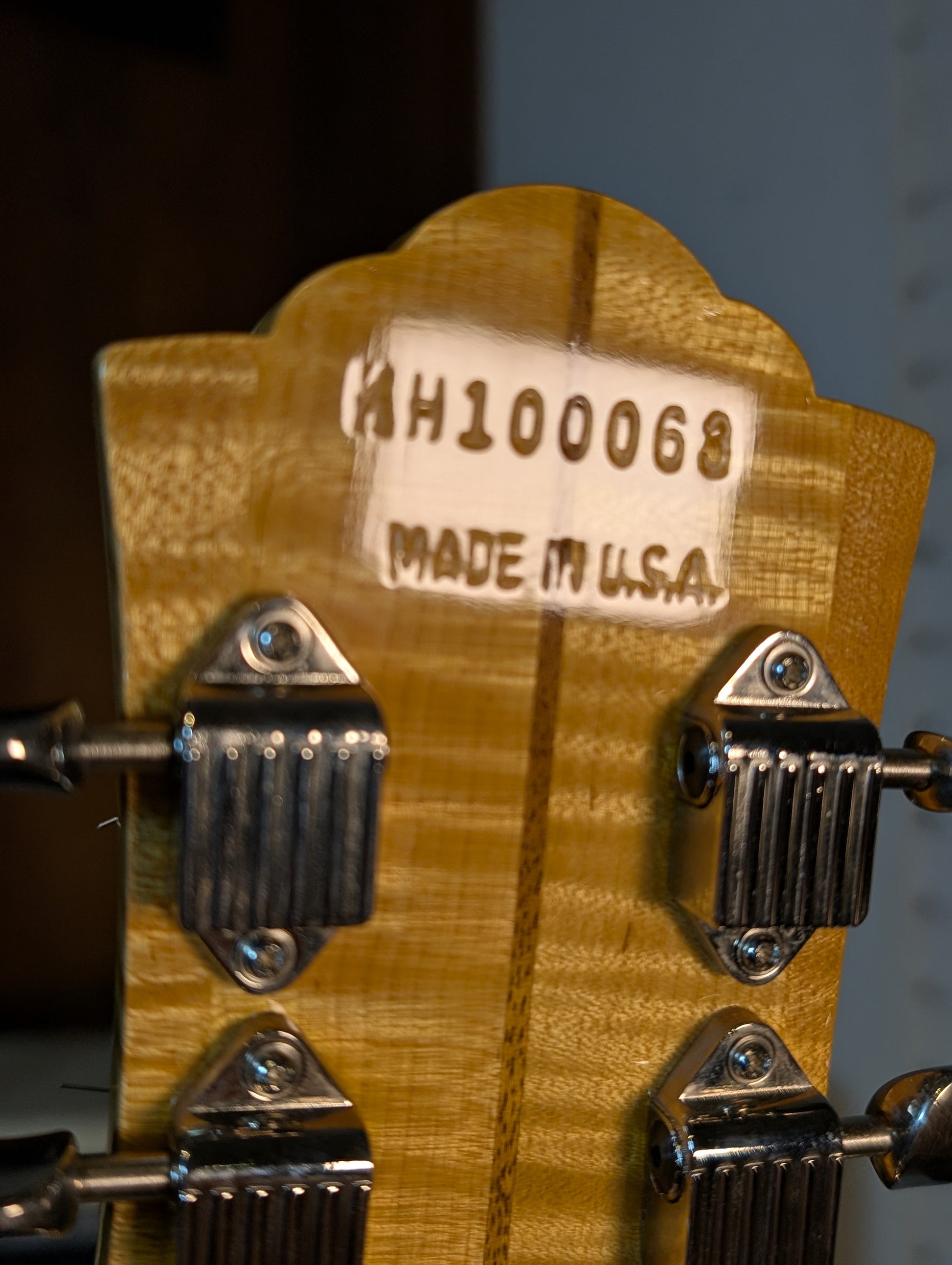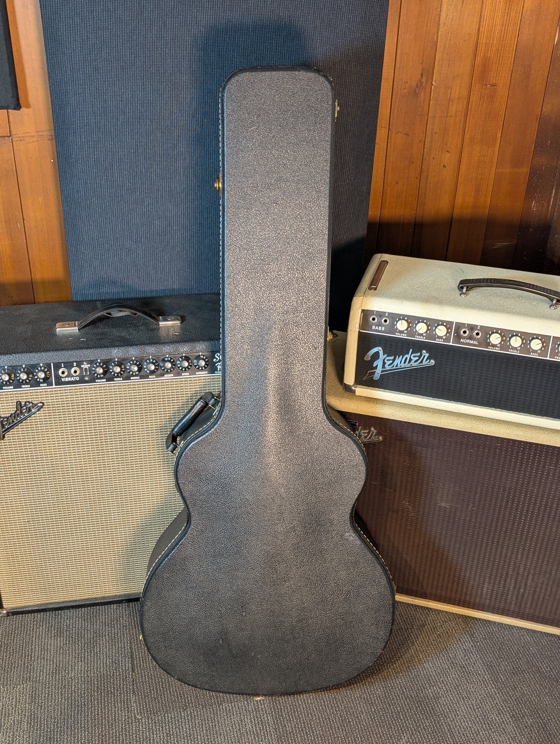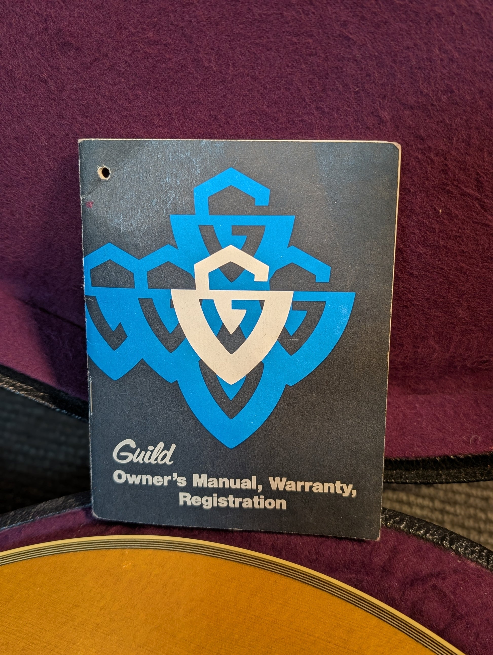 This guitar is in good condition with some cosmetic wear and a crack in the back of the instrument. The crack on the back is under the inner back strip and while it is fairly large our techs have inspected it and it shows no movement. The back strip is thicker than usual which has made the crack not expand further. Structurally this is the only issue with this instrument, all wear is purely cosmetic and doesn't affect the playability of the guitar. The frets are nearly at full height and the neck angle is also very good. The guitar is also setup very well currently and is strung with light gauge strings. Using the serial number chart on the Guild Guitars site, this serial number comes up as being before the first number of 1984 making this a late 1983 or early 1984. The original Guild case is included with the guitar as well as the original owners manual and the case key.