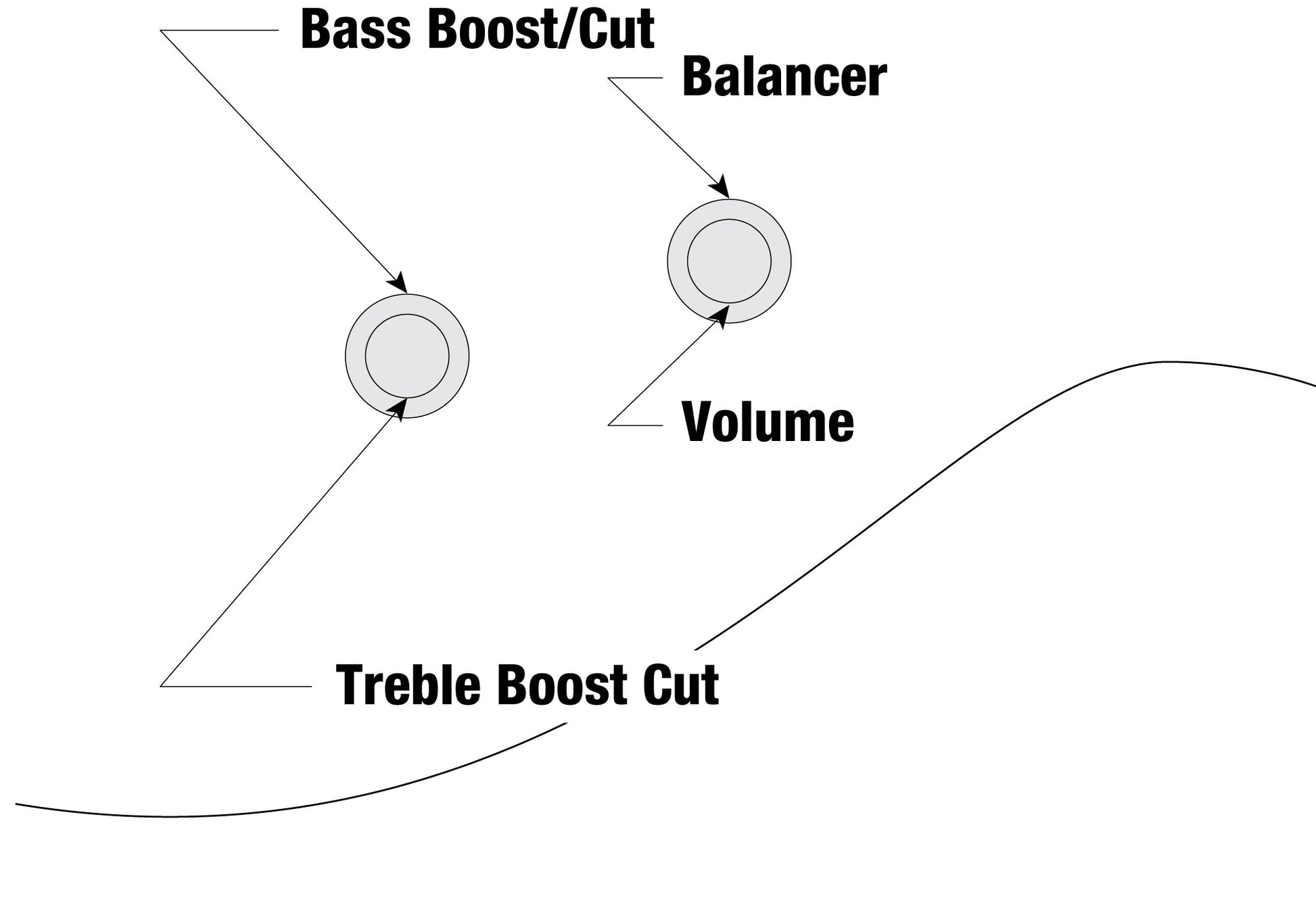 - Controls: 1 x Stacked volume/balance, 1 x Stacked 2-band EQ
