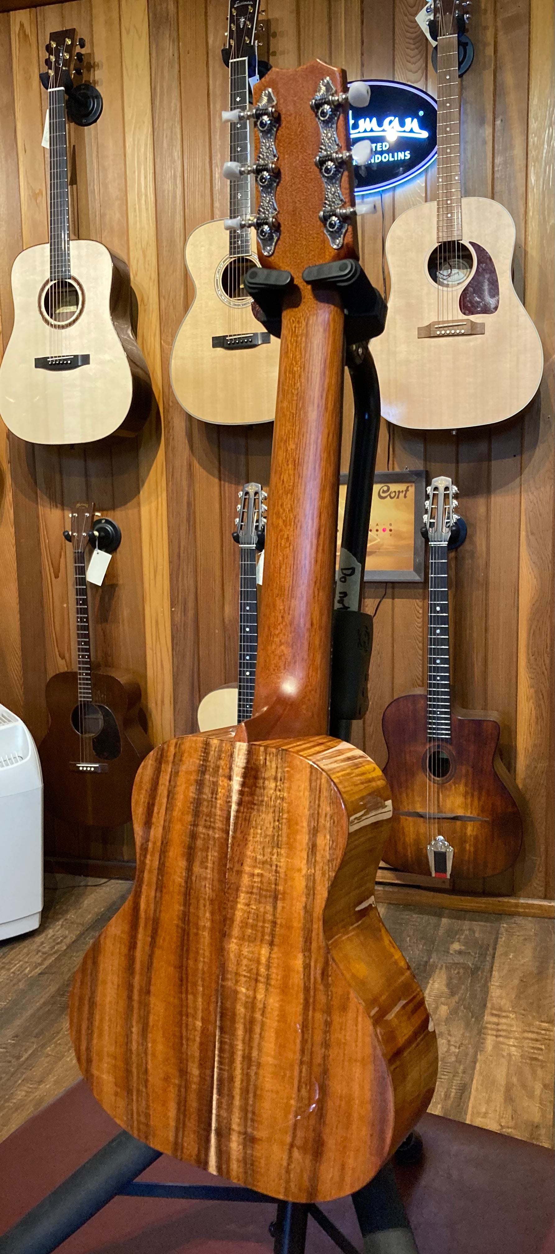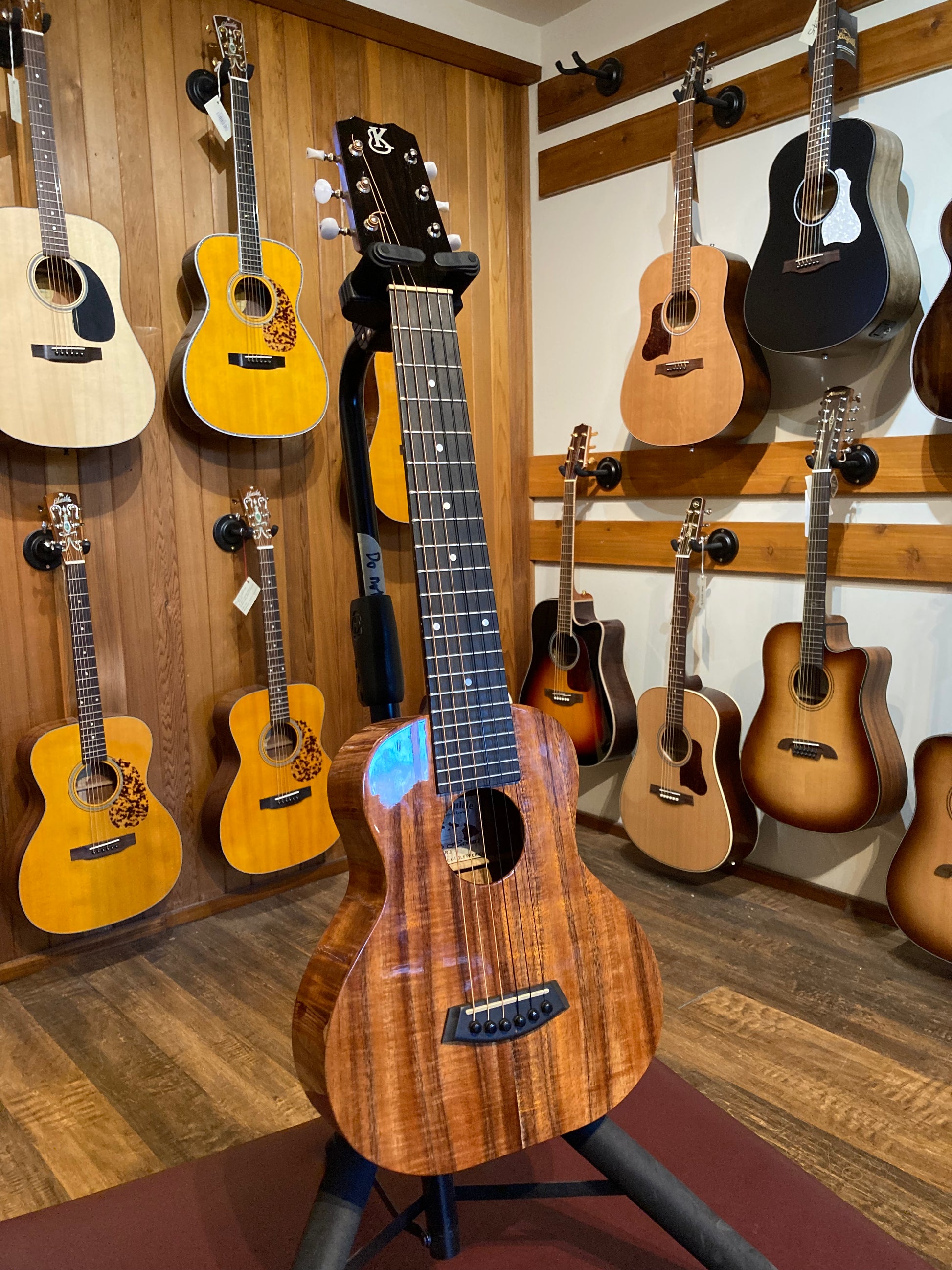 Used Kanile'a K-1 GL6 Premium Tenor uke in mint condition. Features a stunning premium curly Koa body, solid mahogany neck, ebony fingerboard and bridge, and an active pickup with tone and volume controls installed by Kanile'a at the time of purchase.