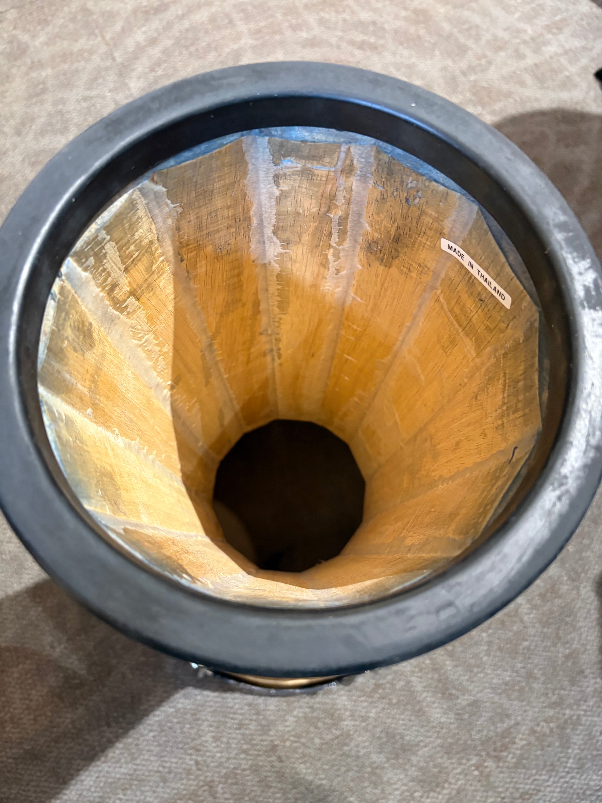 This djembe in very good used condition with minor cosmetic wear. The height is approximately 26" and features comfort rims. A padded gig bag is included.