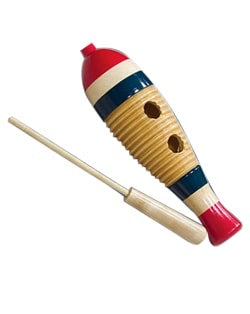 Mano Percussion Fish Guiro. The parallel ridges cut in one side produce a distinctive sound. Played by rubbing a stick across the ridges