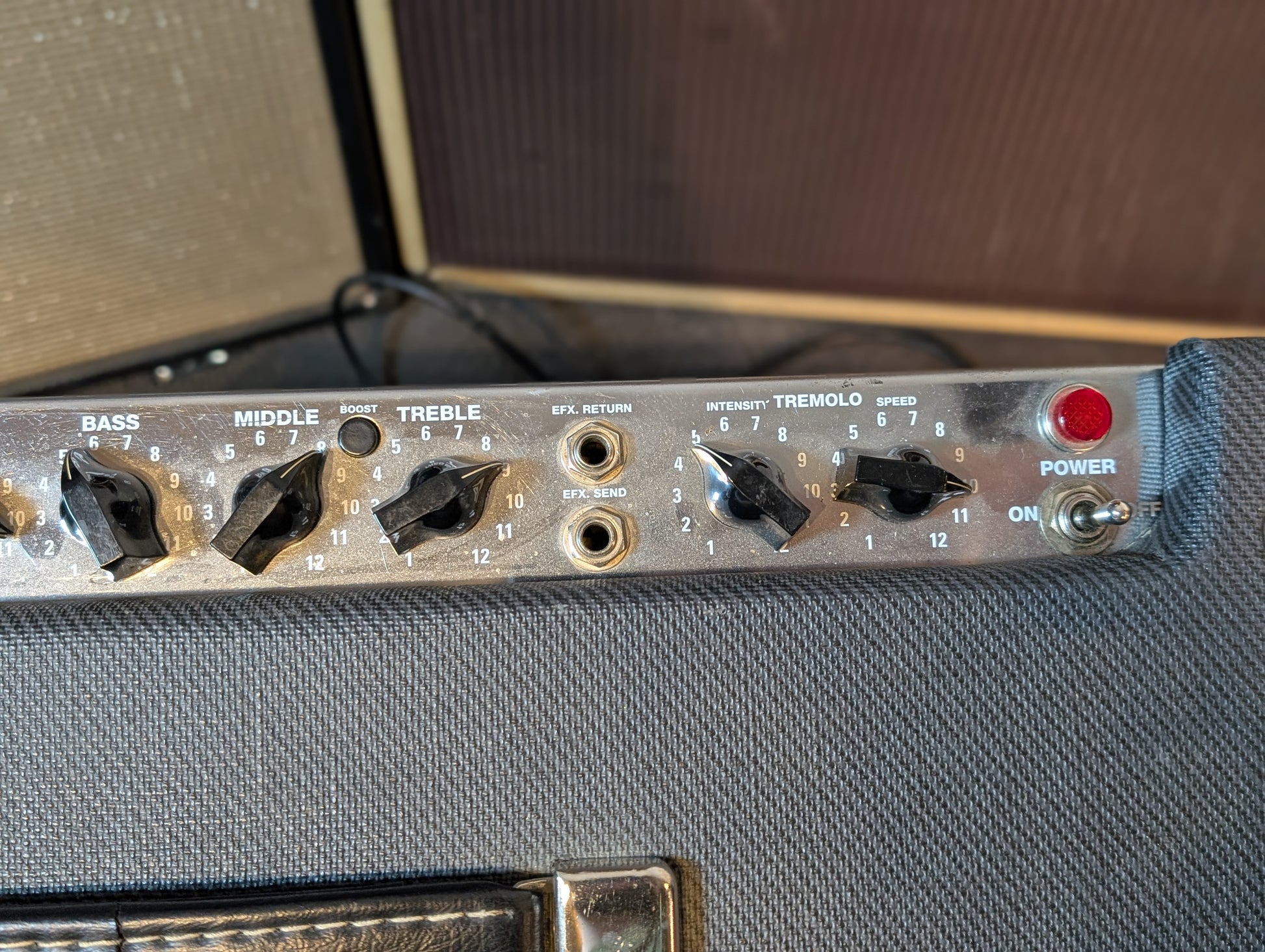 This amplifier is in very good condition with some cosmetic wear. It has been fully tested and everything is 100% working with no issues. The most noticeable wear is on the handle which is separating slightly on the side, the handle is still structurally fine and usable. This amp did not come with a footswitch, we have tested it using an Orange 2 button switch we sell as well as a Rapco YS-P-10 cable and were able to change channels as well as turn the tremolo on and off. From our reasearch it looks like the boost and the reverb were not footswitchable.