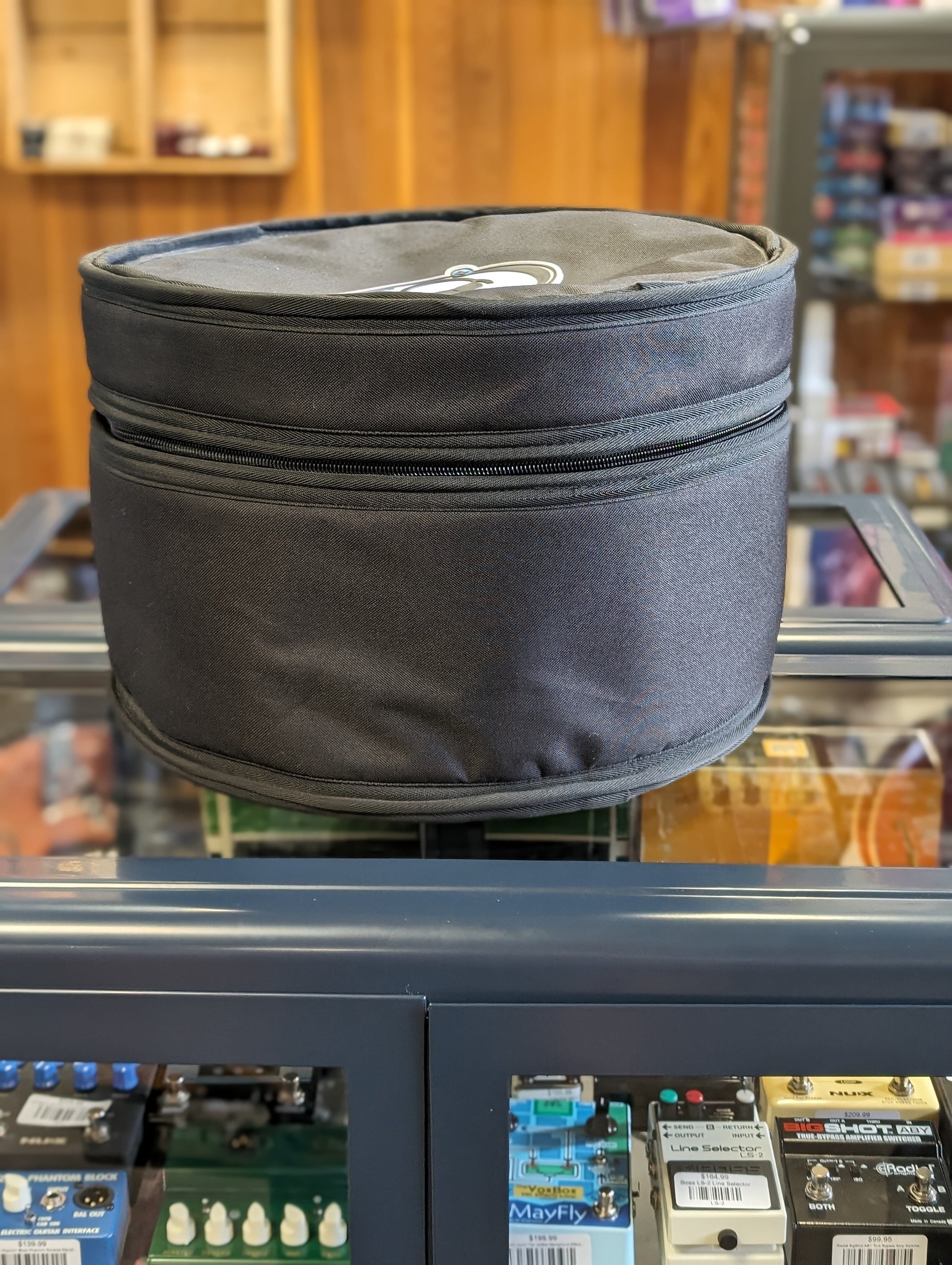 This bag is in very good condition with no damage or tears. The zippers are working with no issues.The R designation on the model number means this bag can accomodate a rack tom that has a rim mounted suspension system.
