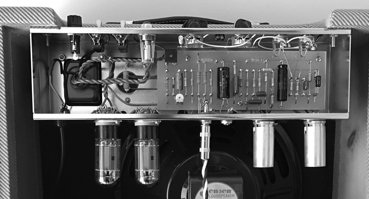 The vintage tone of your new TD-58 amplifier is based on classic American tweed amplifiers of the mid to late 50's. This Tweed TD-58 uses a pair of 12AX7 tubes for our custom preamp driving a classic tweed-era "Cathodyne" phase inverter. The power amp features a matched pair of 6V6 tubes in a Class AB push-pull design, with (adjustable) fixed bias.