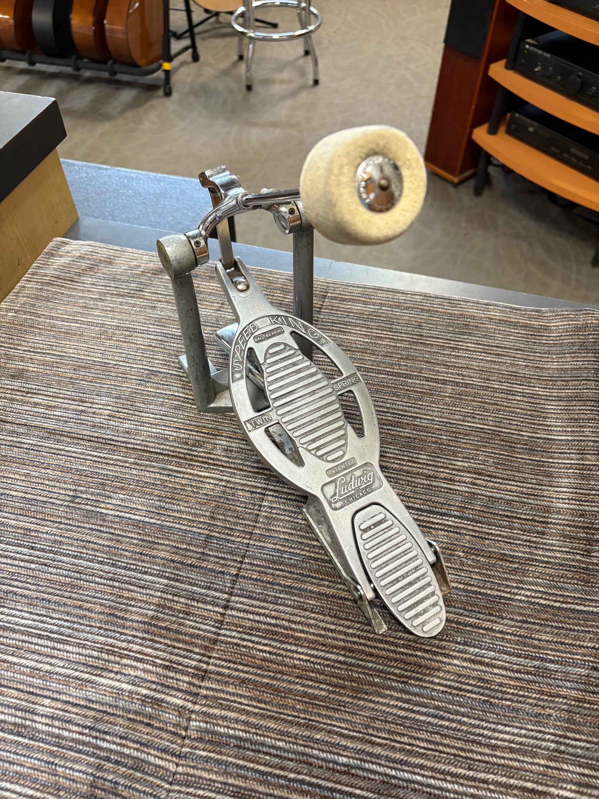 This Remo practice pad outfit is in good used condition. The pads are Remo's famous tuneable practice pads (6" Bass, 10" Snare, 10" Floor, 8" Tom). The rack and cymbal arm are all functional and working as expected. The package will also include a vintage Ludwig Speed King pedal in smooth working order. The pedal's hoop clamp tightening screw is broken but still functional.