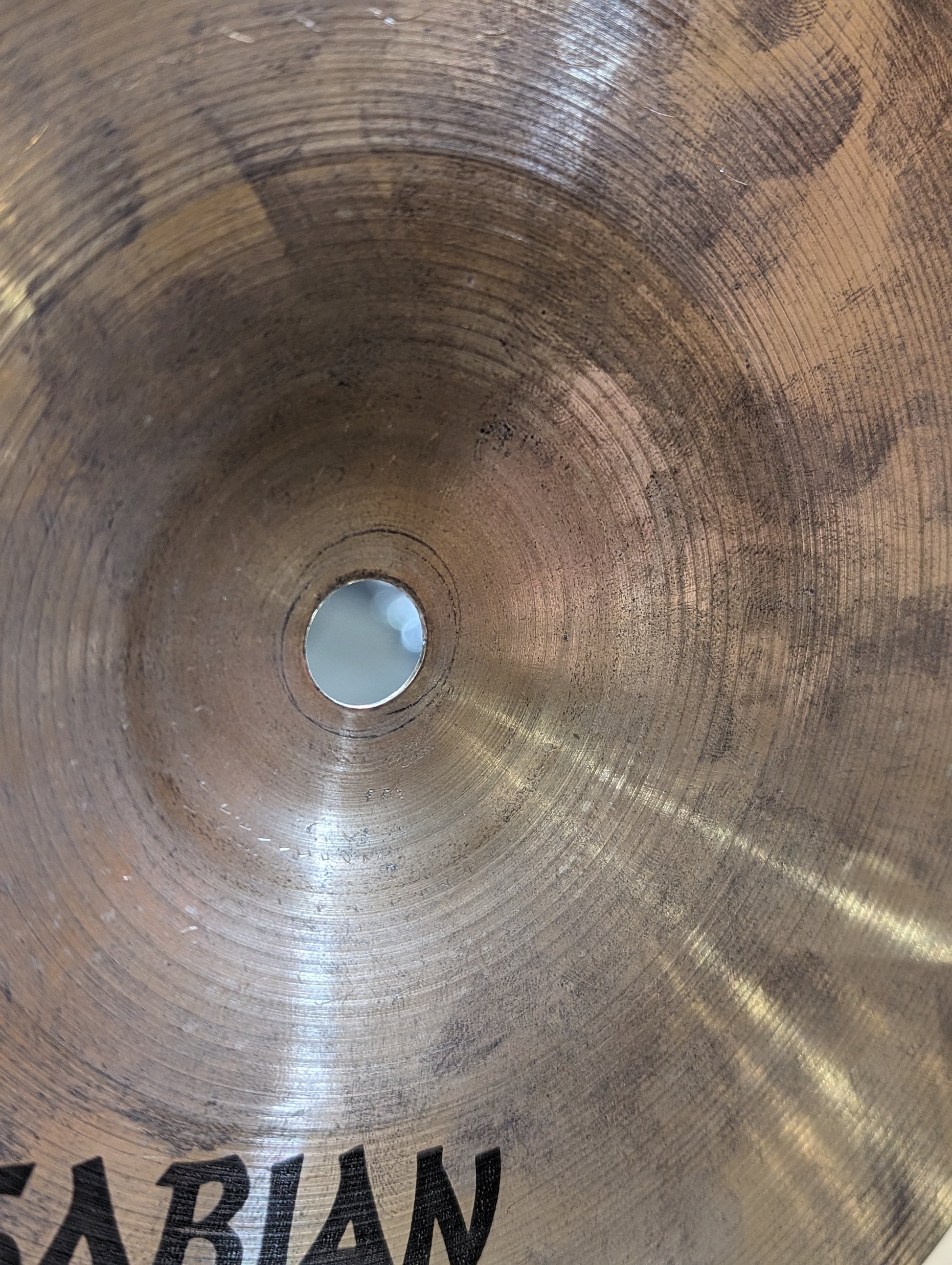This cymbal is in good condition with no cracks or damage and only some cosmetic wear. There is no keyholing at all on the cymbal.