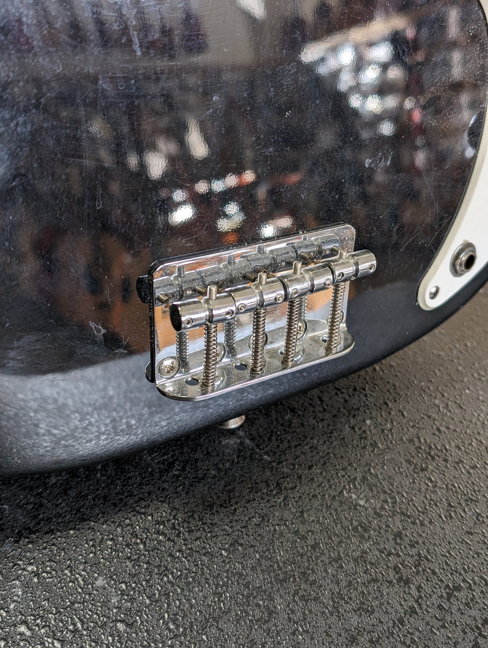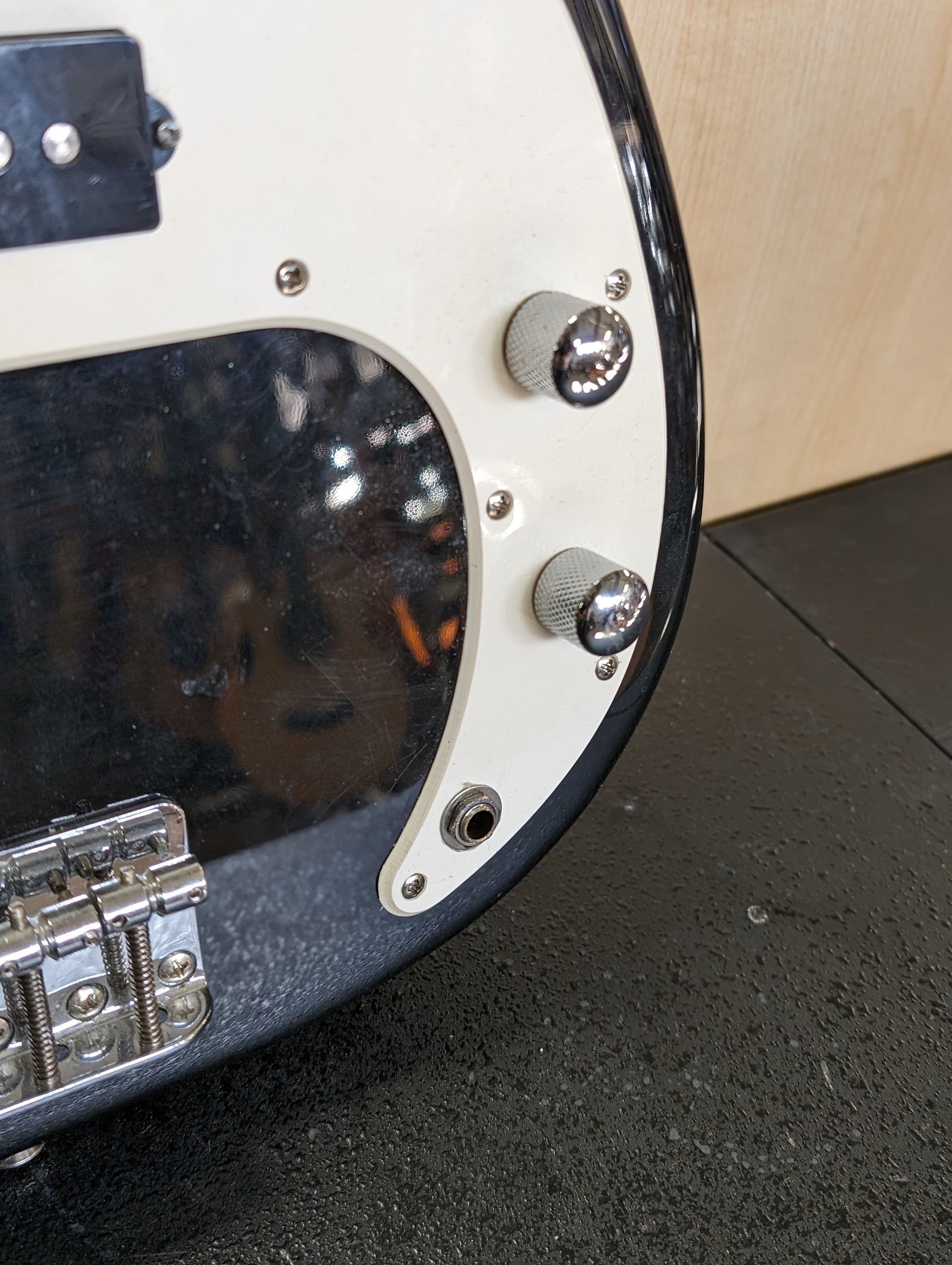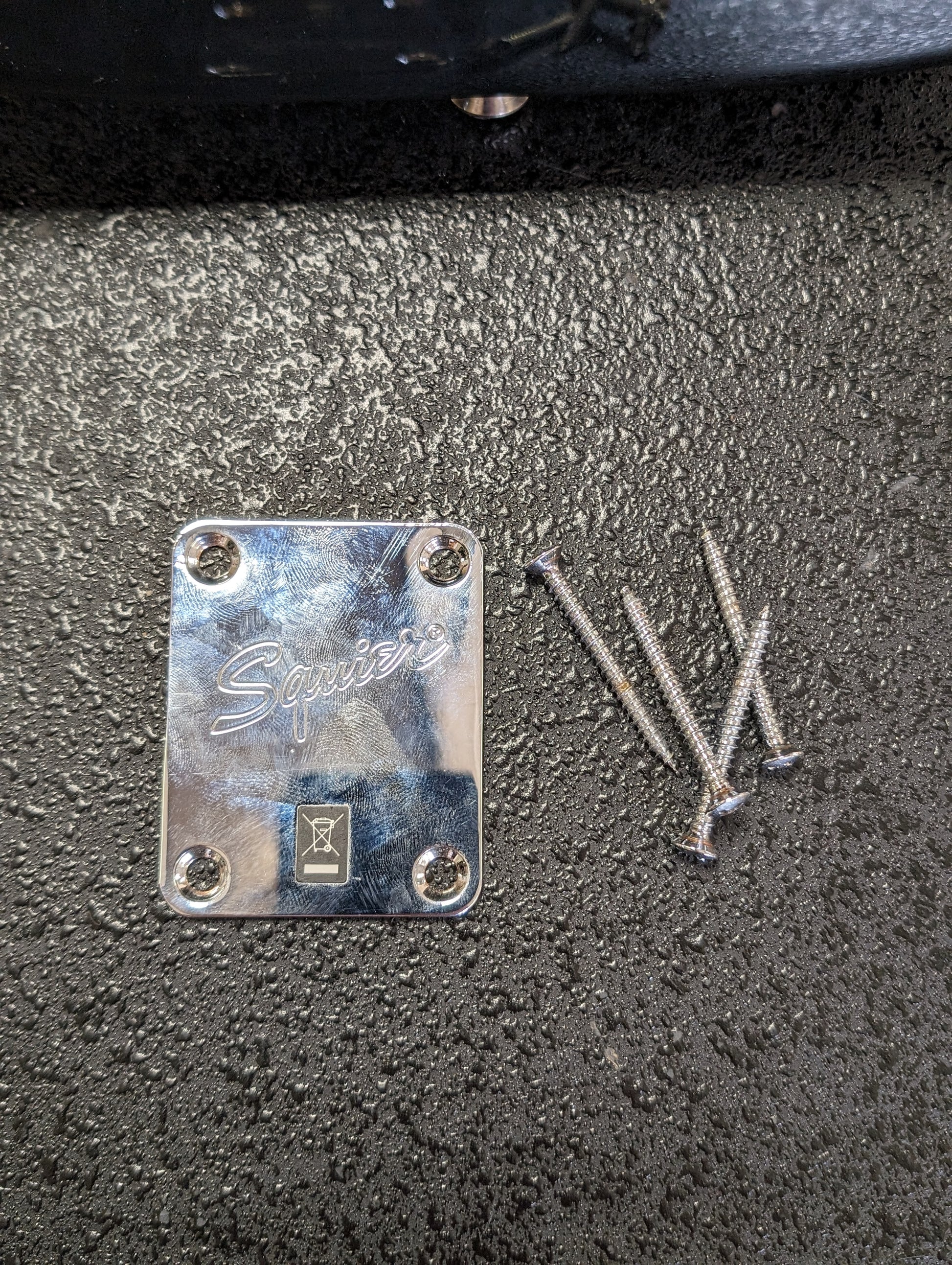 This bass had a defective neck and therefore is being sold as-is with all the parts for the body. The pickup and electronics all work and the bridge has no issues. The Squier branded neckplate is included with the neck screws.