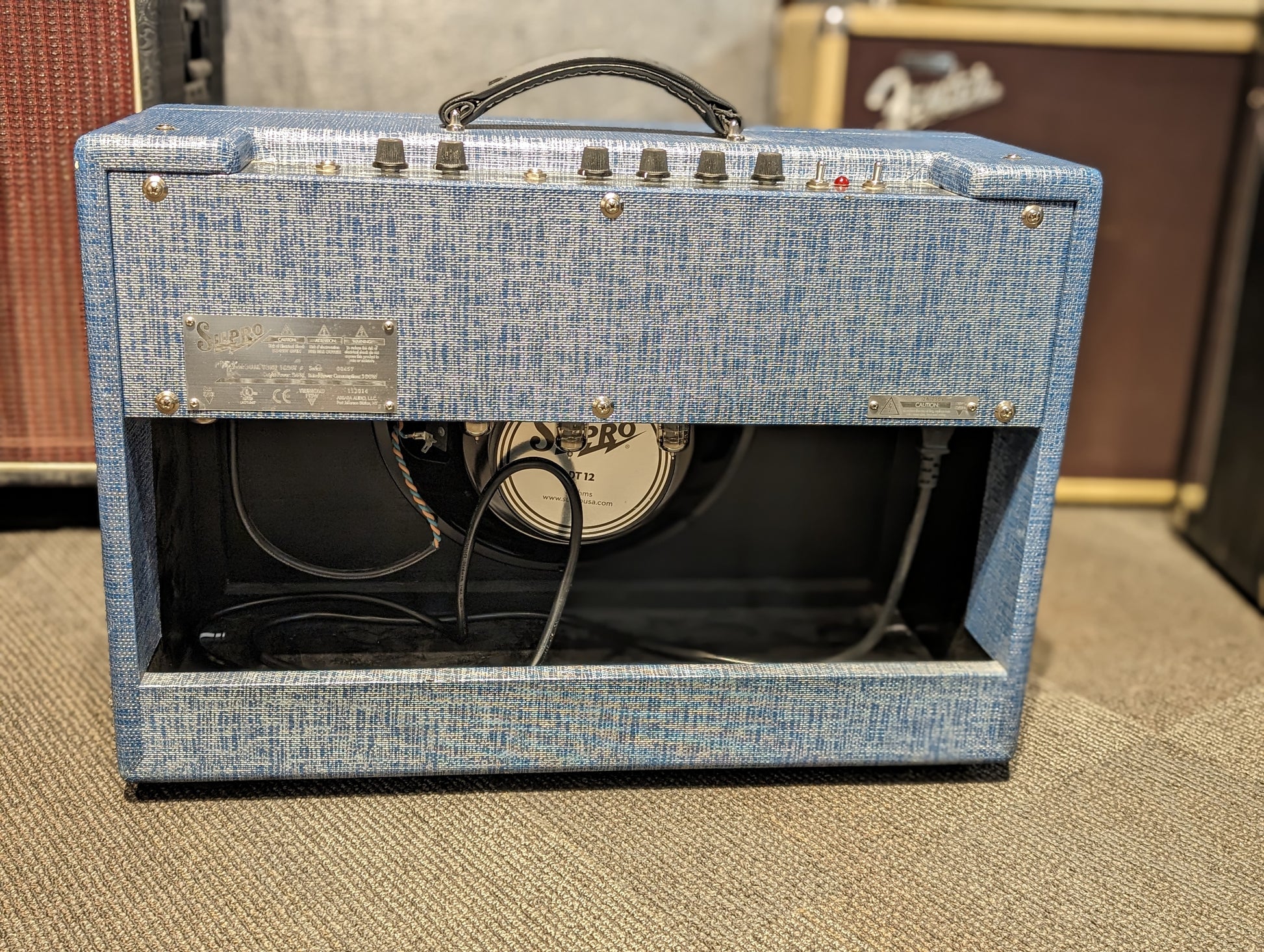 The 1964 reissue Supro Dual-Tone’s vintage-correct, lightweight cabinet—combined with our breathtaking custom 12” Supro speaker—kicks out surprisingly plump low end with all the detailed midrange and high end articulation that defines the Supro tone players have been chasing for decades. Loud enough to gig with a band, yet easy to haul around town, the Supro Dual-Tone is the perfect small club and recording amplifier. This amp has the long lost tone, so Ramble On down to a Supro dealer near you and Bring It on Home