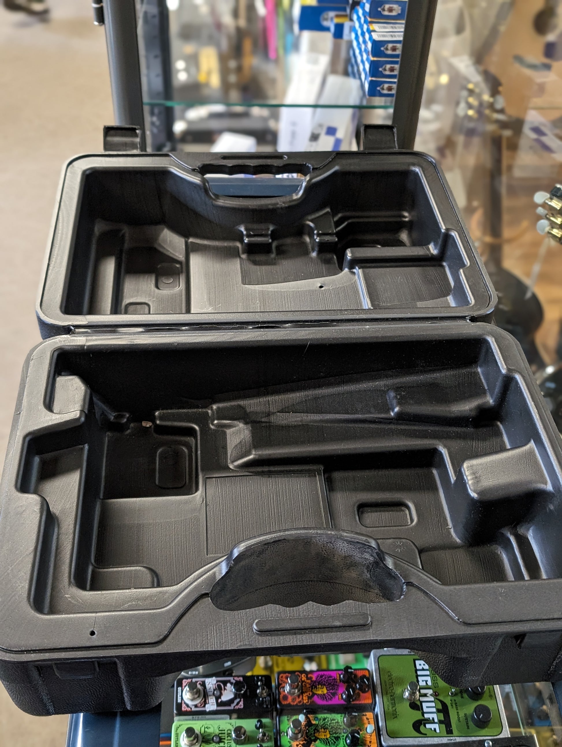 This case is in good condition. The latches are working well, the plastic hinge has some cracks in it but seems solid regardless. Sold as-is.