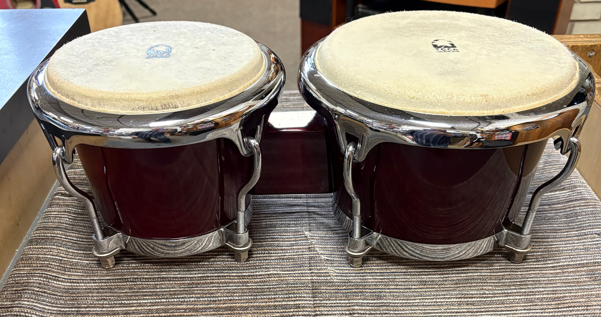 These bongos are in very good used condition with only minor cosmetic wear. The set features comfort rims and are aimed at intermediate players. Does not include the tuning wrench.